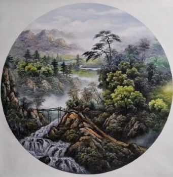 • 新中式聚宝盆山水画纯手绘油画山水画刀画油画高品质实力画家作品