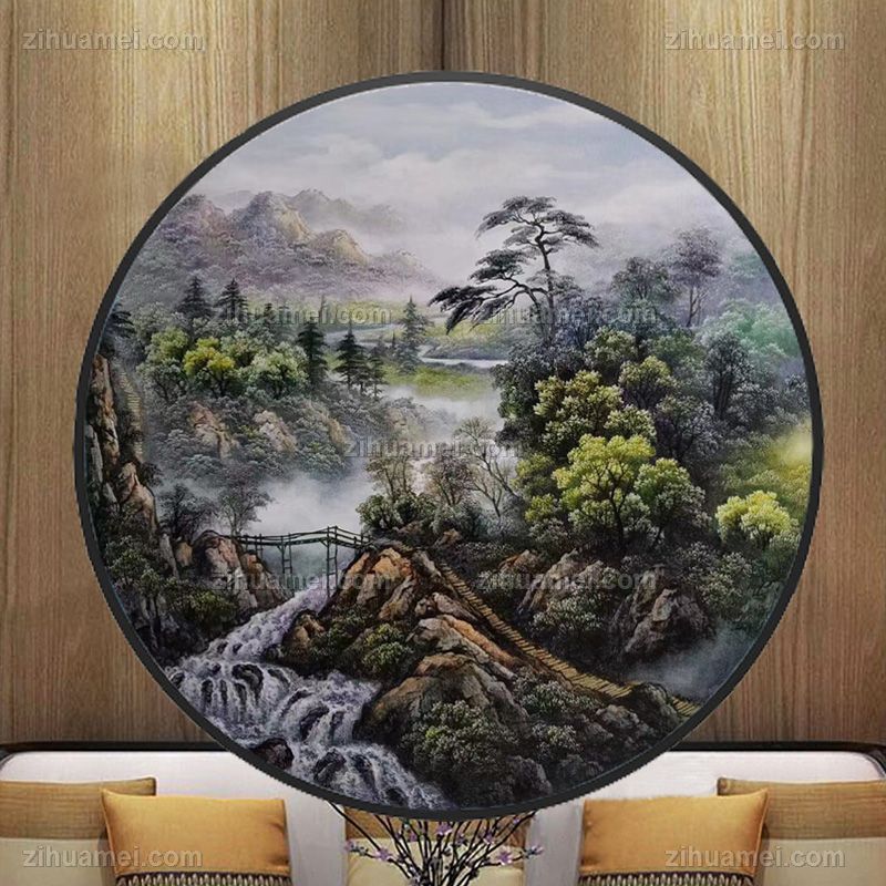 纯手绘风景油画山水画聚宝盆风景油画实木画框 手绘