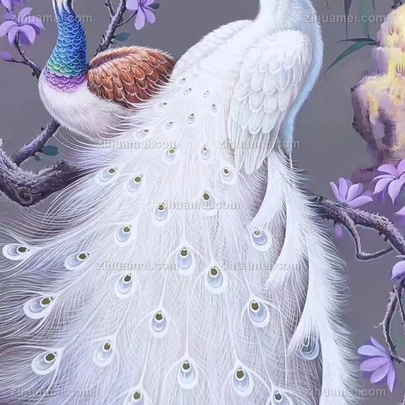 • 纯手绘新中式油画孔雀图白孔雀图孔雀不落无福之地写实油画实木角花框