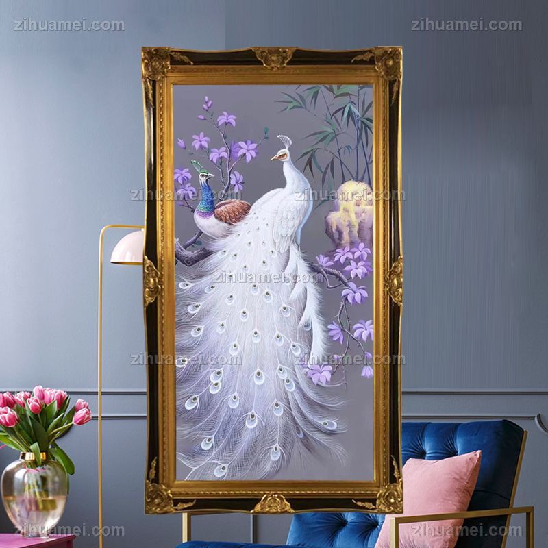 • 适合中式玄关卧室的孔雀手绘油画
