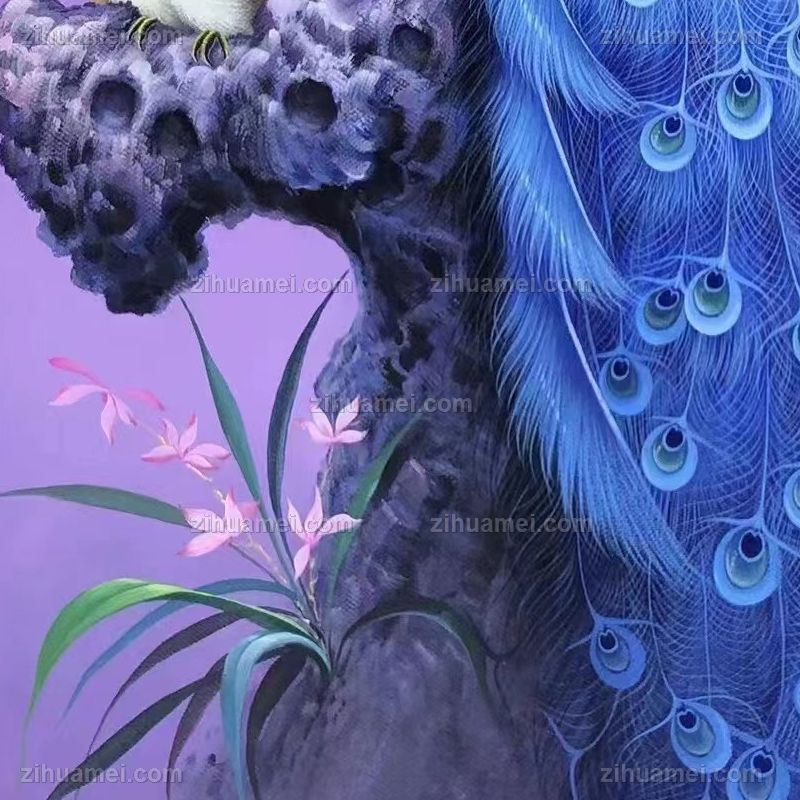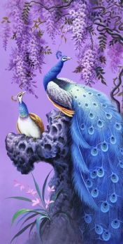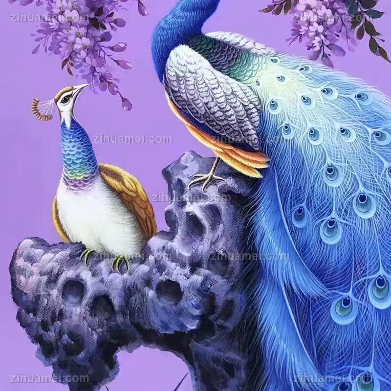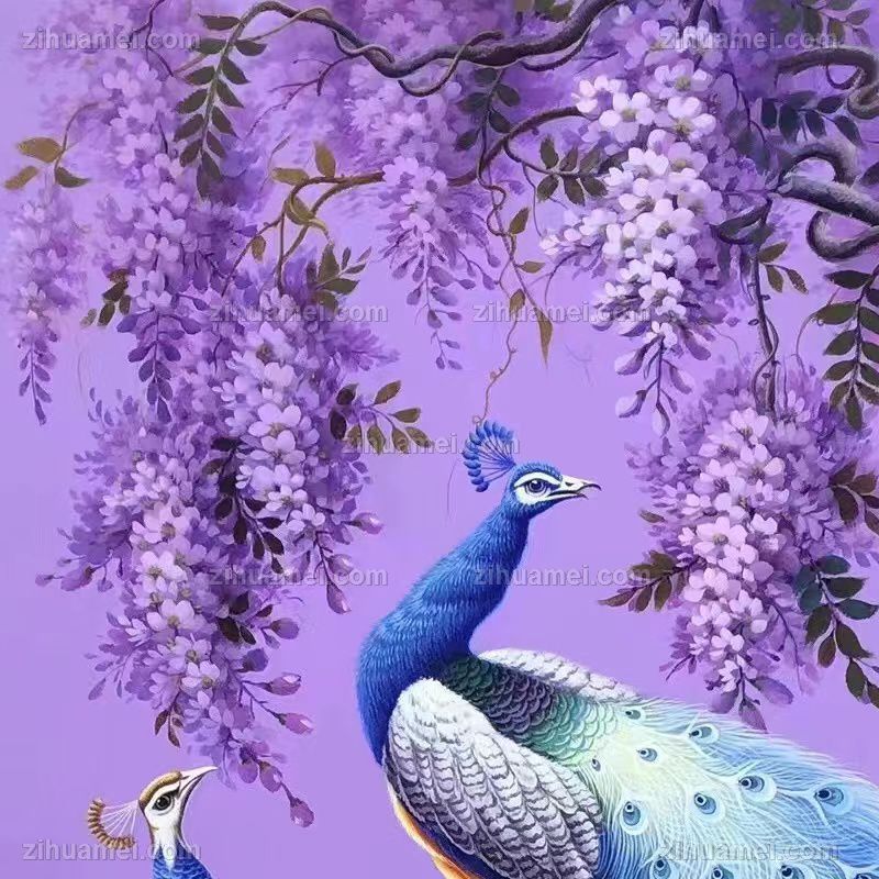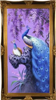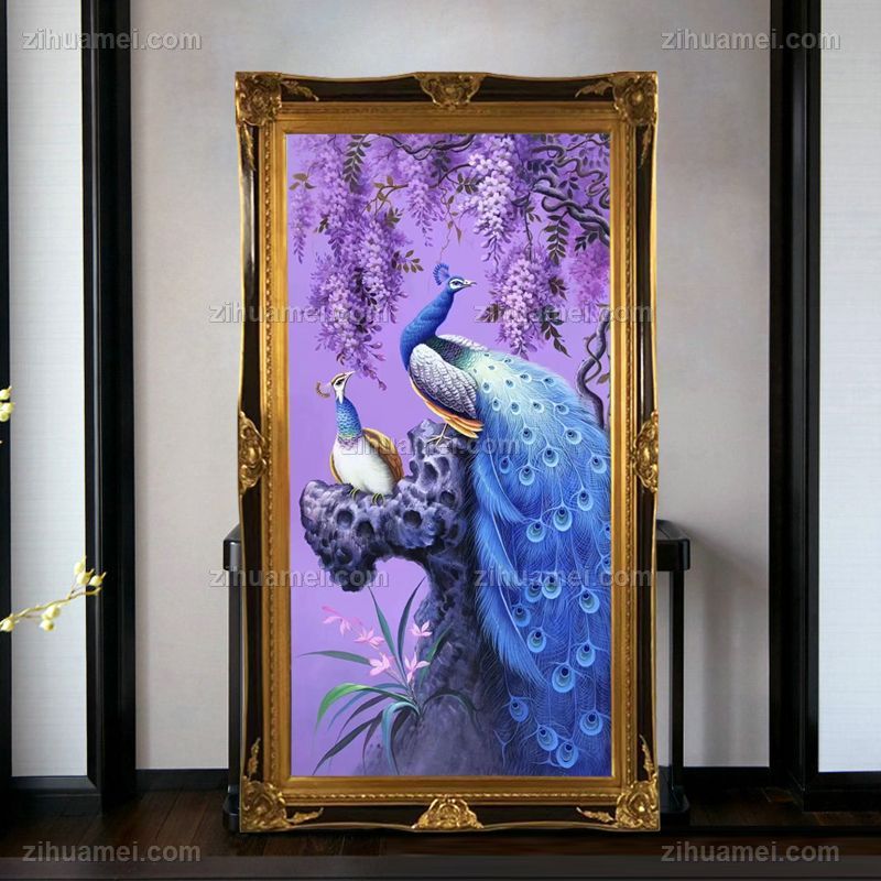 • 紫气东来有福之地纯手绘新中式油画孔雀图孔雀不落无福之地写实动物油画