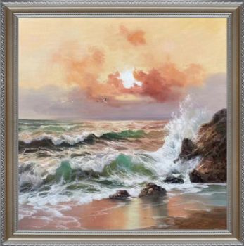 高品质海浪手绘油画作品海景风景油画实木画框 手绘
