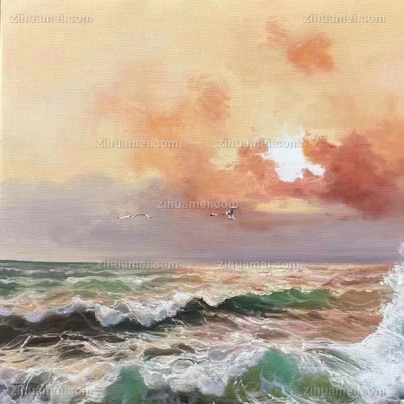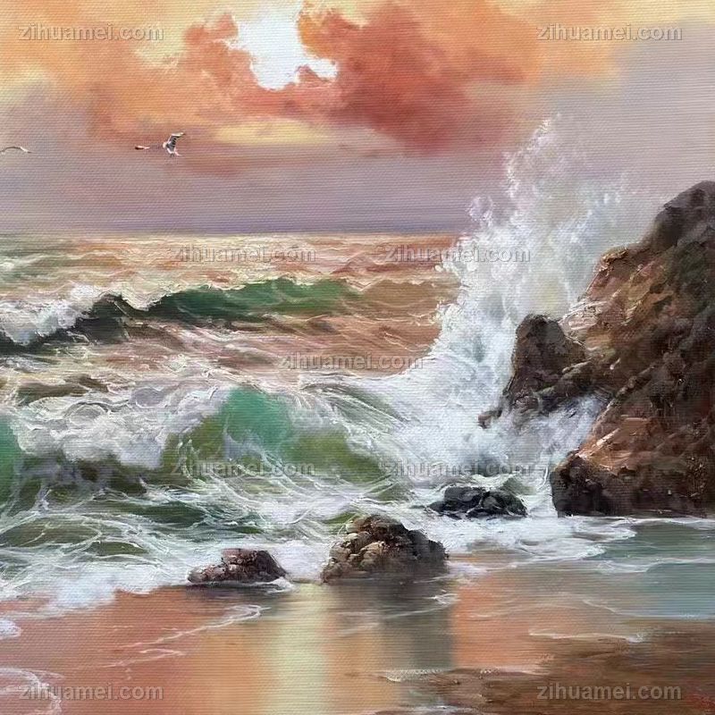 纯手绘海浪风景油画适合办公室茶室的风景油画 手绘