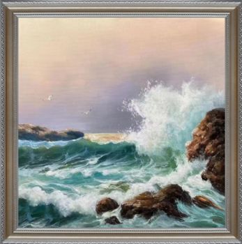 • 写实精品油画欧式风景油画纯手绘海浪风景画飞翔的海鸥实木画框