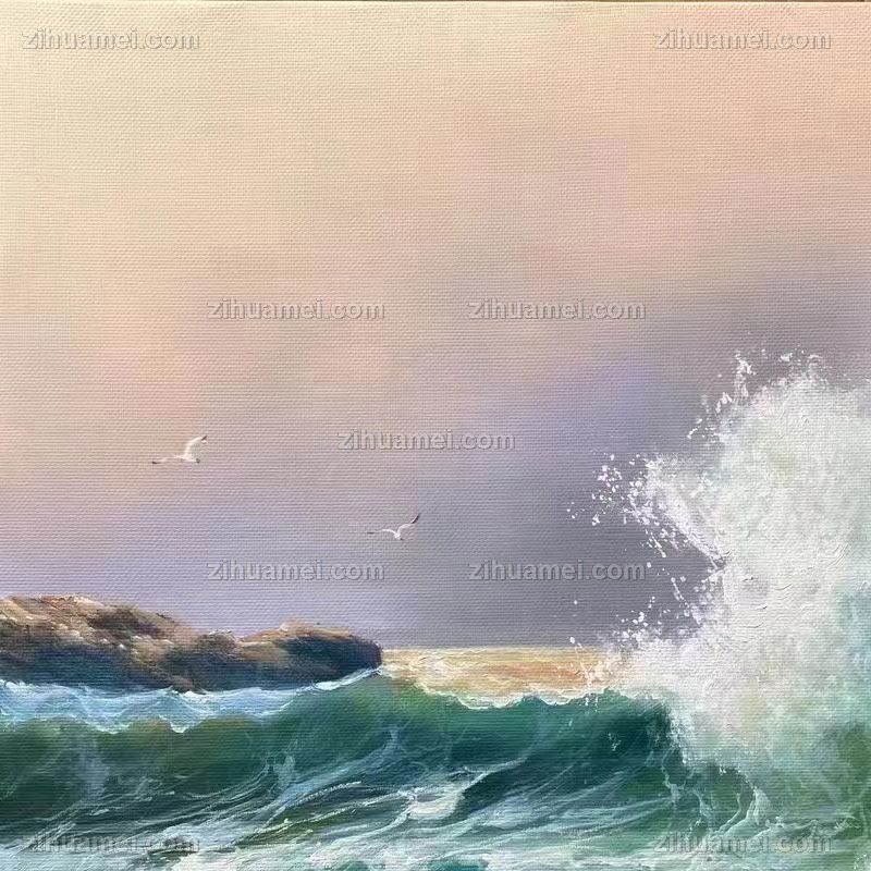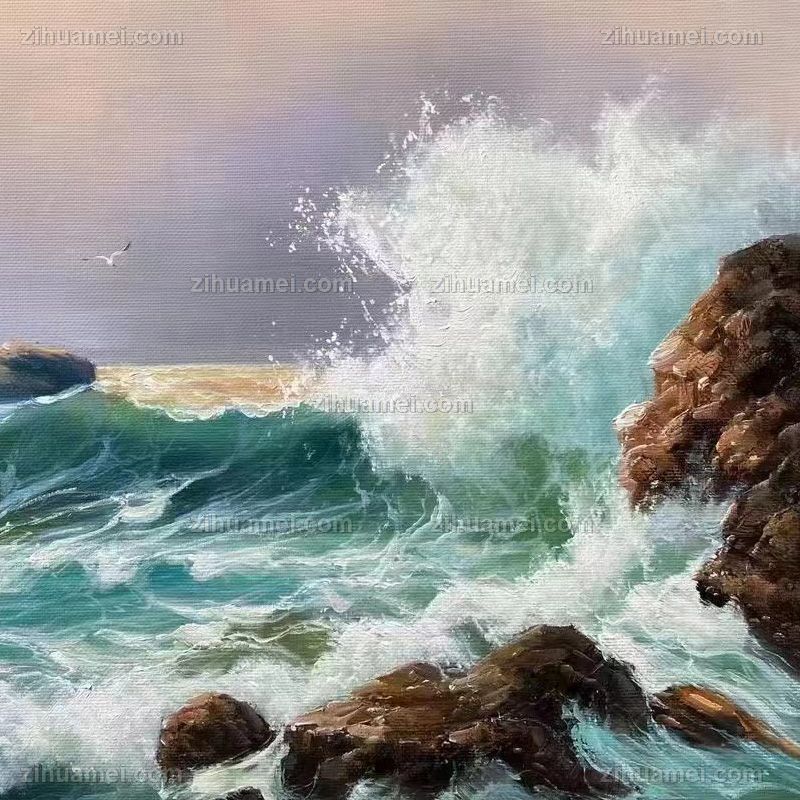 • 适合客厅卧室的海浪风景油画