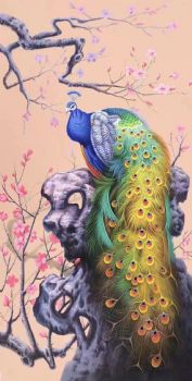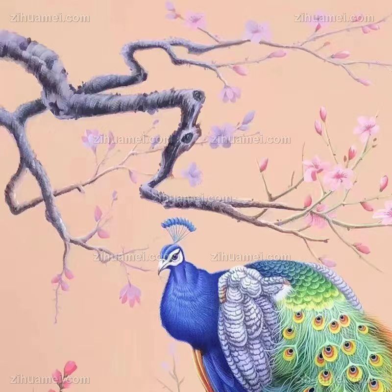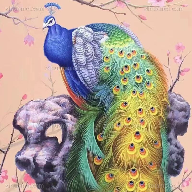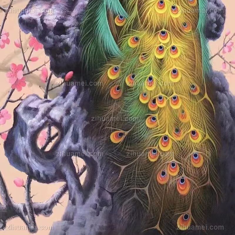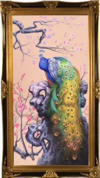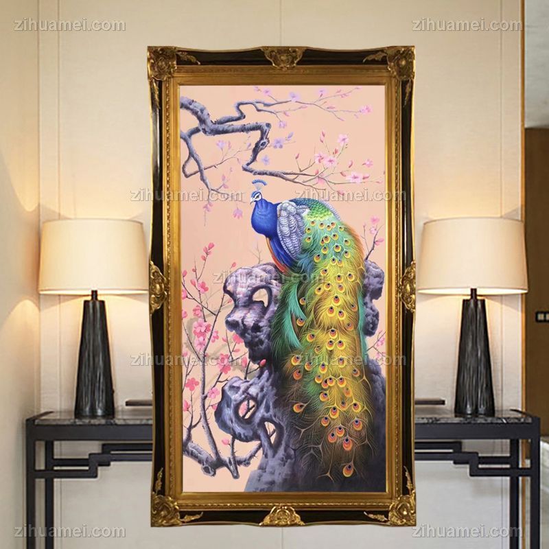 • 新中式油画纯手绘动物油画超写实孔雀画实木角花框精品动物油画