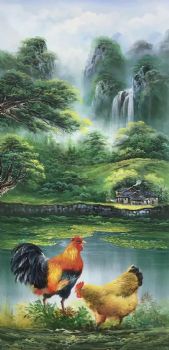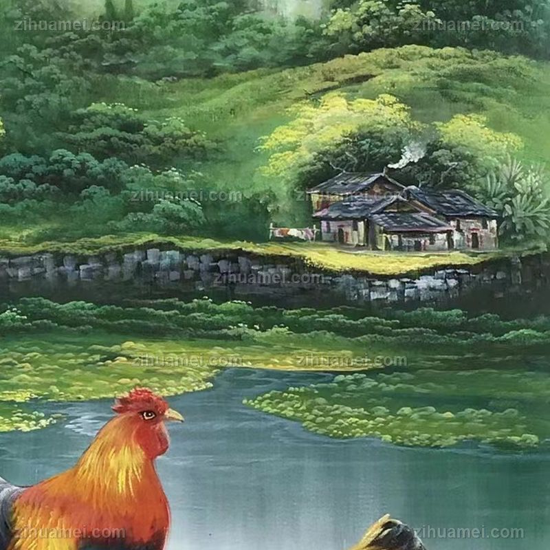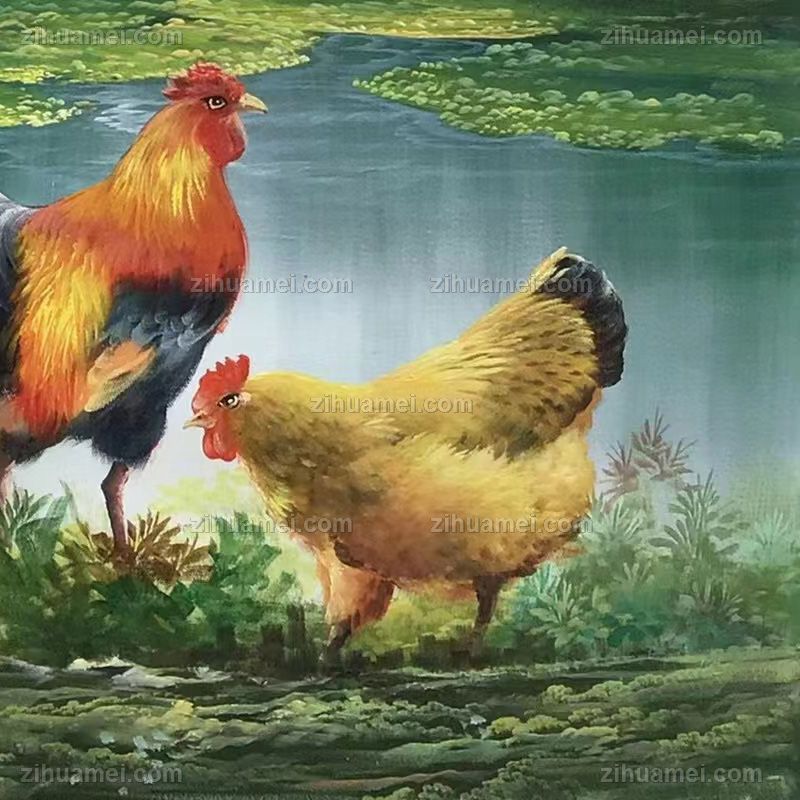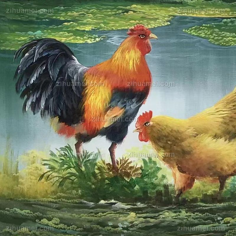 勇立潮头领导者动物油画公鸡图纯手绘写实油画 手绘