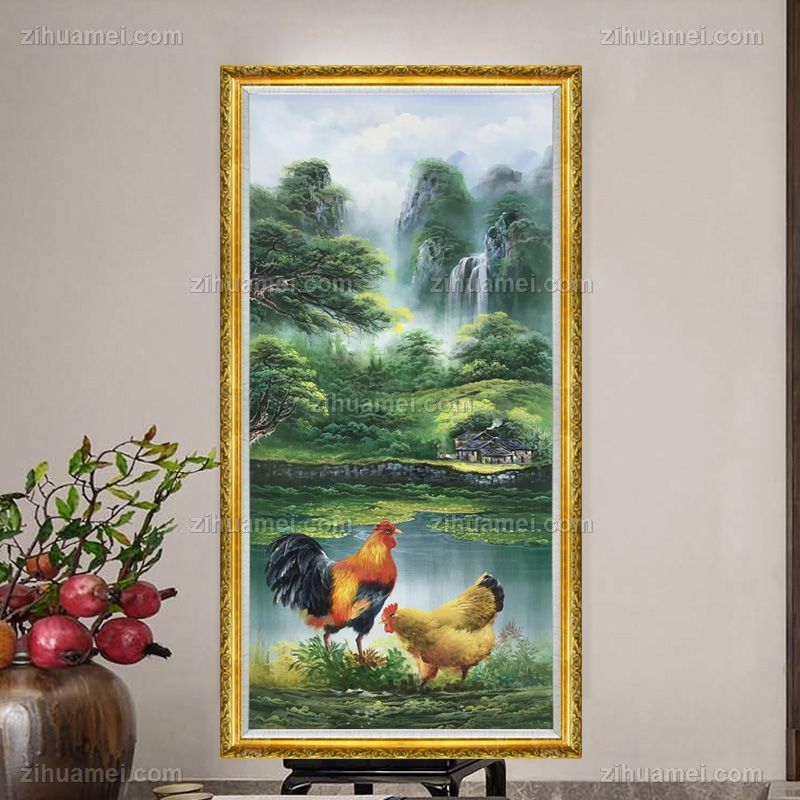 • 高品质山水油画纯手绘新中式风水画聚宝盆夫妻和睦动物油画实木画框