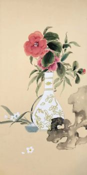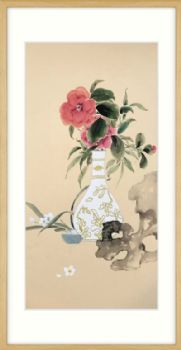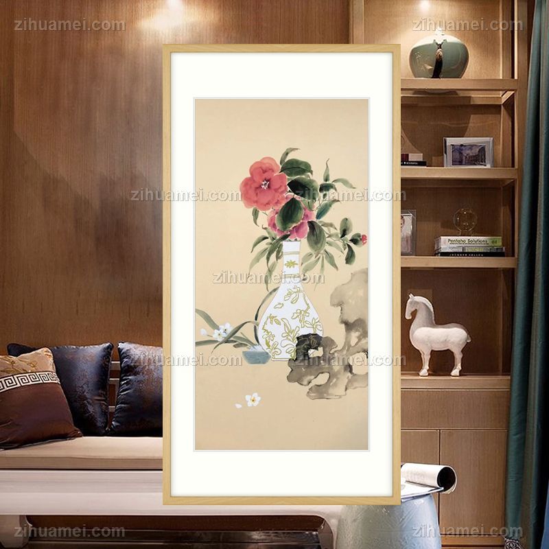 • 纯手绘花瓶风景画兰花花瓶假山精品四尺四开水墨花鸟画原木画框