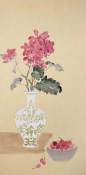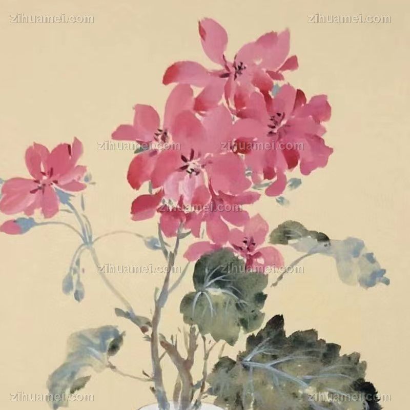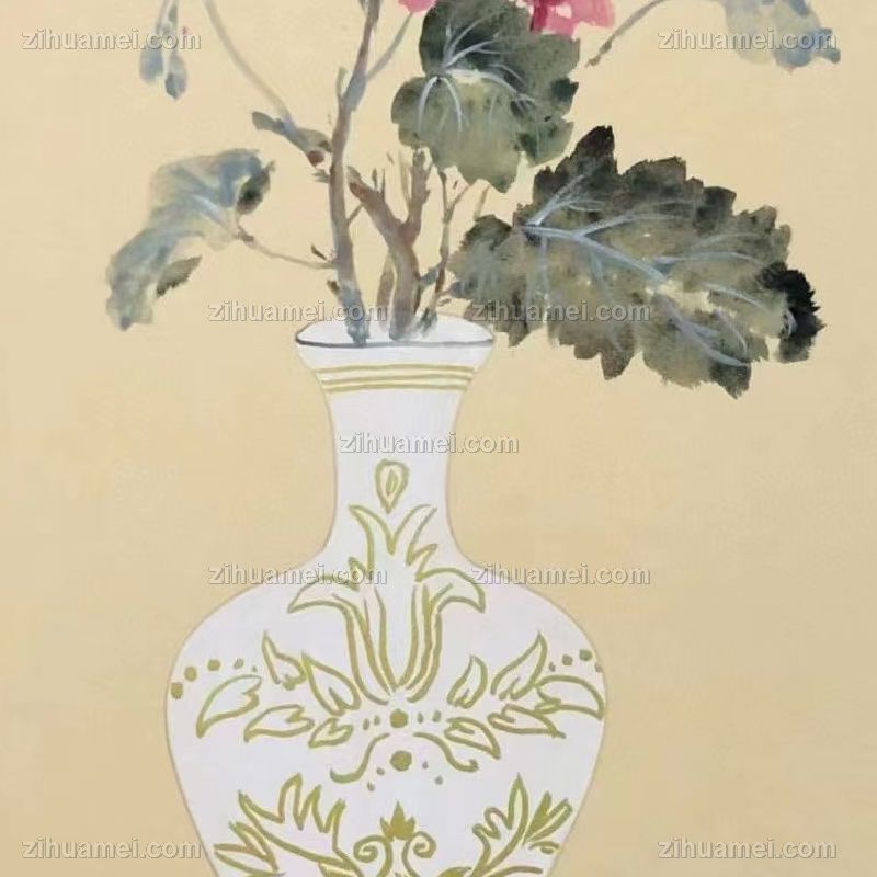 桌子上的花卉花瓶中式水墨国画没骨花卉作品 手绘