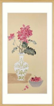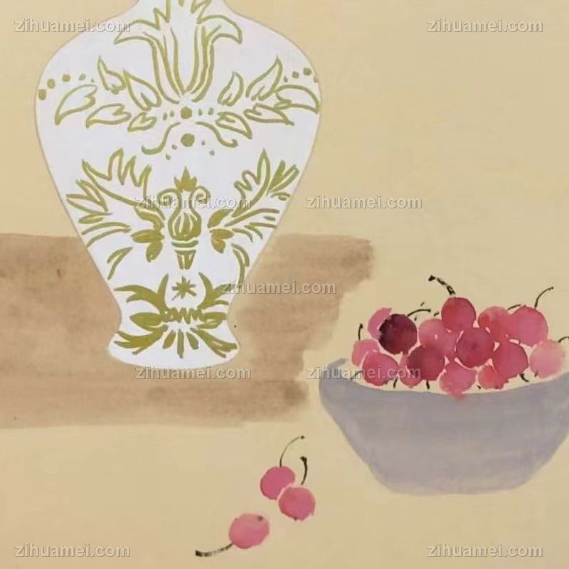 • 车厘子精品四尺四开水墨静物写意风景画纯手绘樱桃风景画原木画框