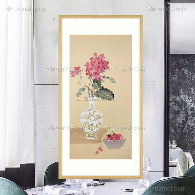 纯手绘富贵瓶花卉水墨国画餐厅卧室挂画 手绘