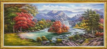 • 秋天的美景欧美风景油画纯手绘山水画金色风景油画实木画框