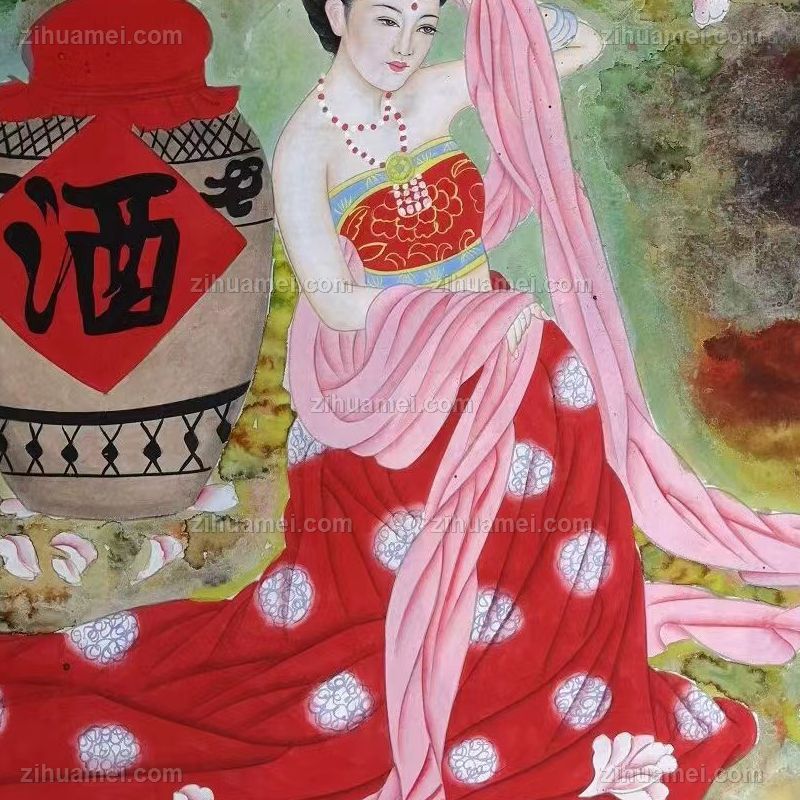 • 水墨人物画最美不过女儿红纯手绘酒家女孩人物工笔画适合酒店餐厅挂画