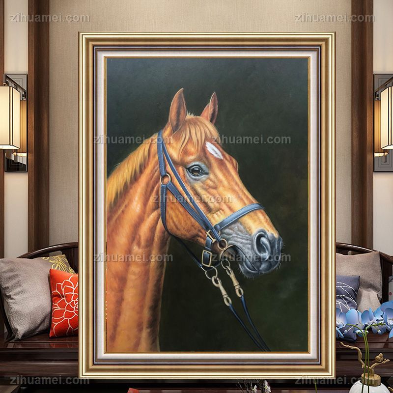 • 纯手绘马头油画一马当先写实动物油画适合办公室挂画