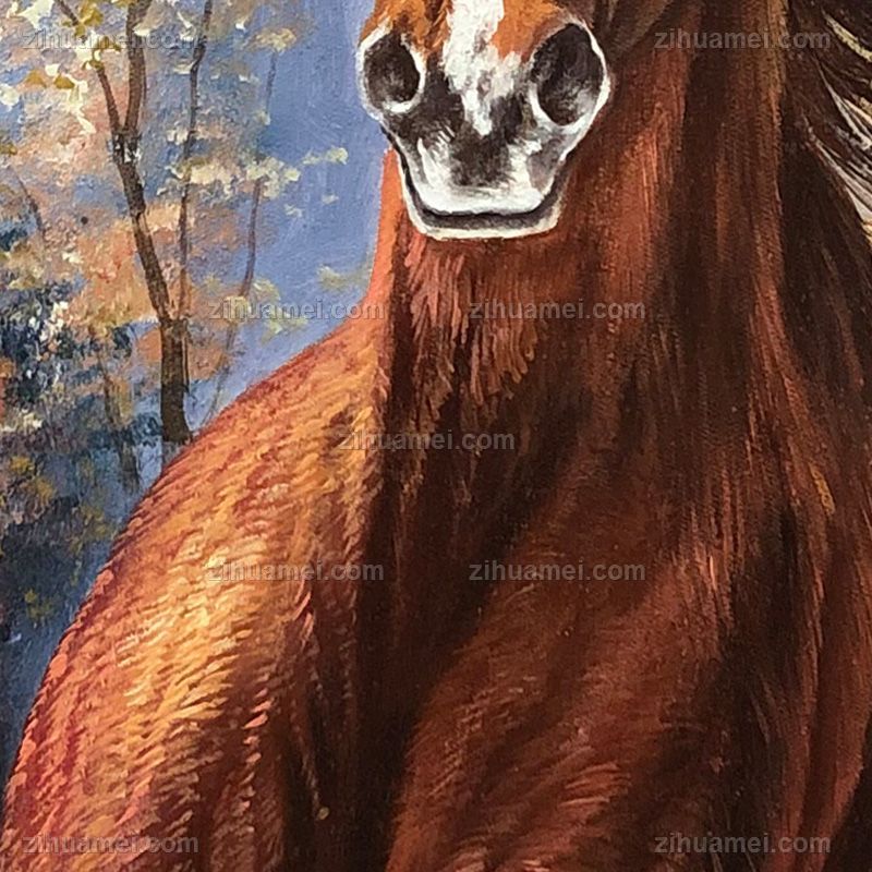 精品花卉白马图纯手绘写实动物油画实木画框 手绘