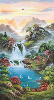 金山聚宝盆山水风景油画纯手绘大厅山水风景油画 手绘
