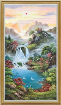 纯手绘风景油画山水画聚宝盆风景油画实木画框 手绘