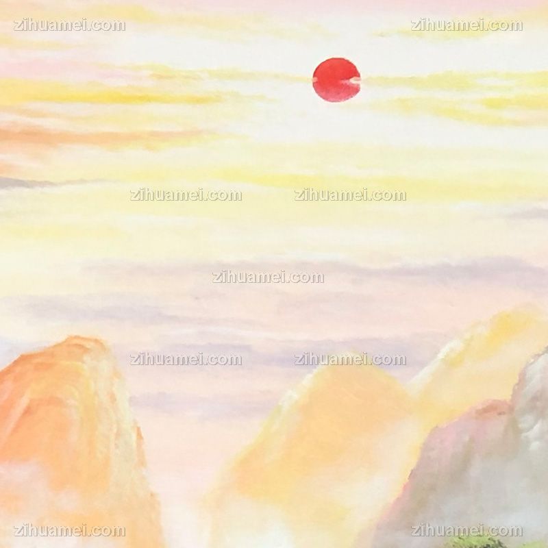 日照金山手绘风景油画客厅玄关装饰画实木外框 手绘