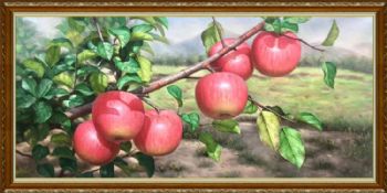 • 新中式油画纯手绘静物油画超写实苹果树实木框精品写实油画
