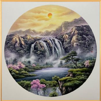• 实力画家新中式山水油画纯手绘写实风景画金色实木框精品风景油画