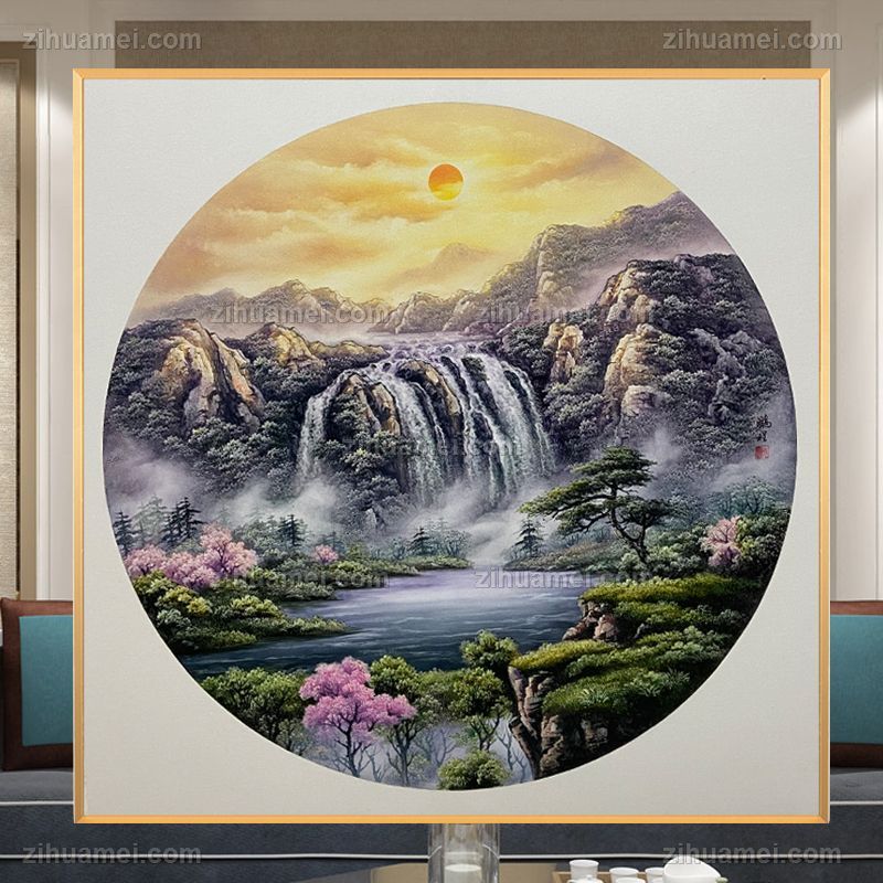 纯手绘风景油画山水画聚宝盆风景油画实木画框 手绘