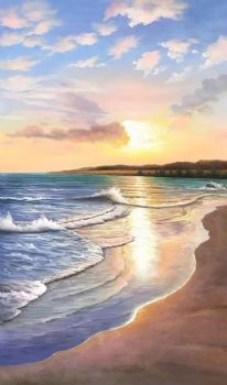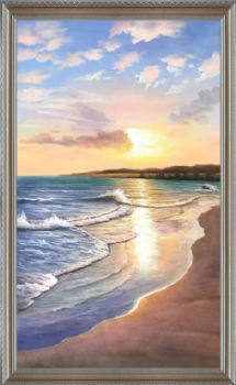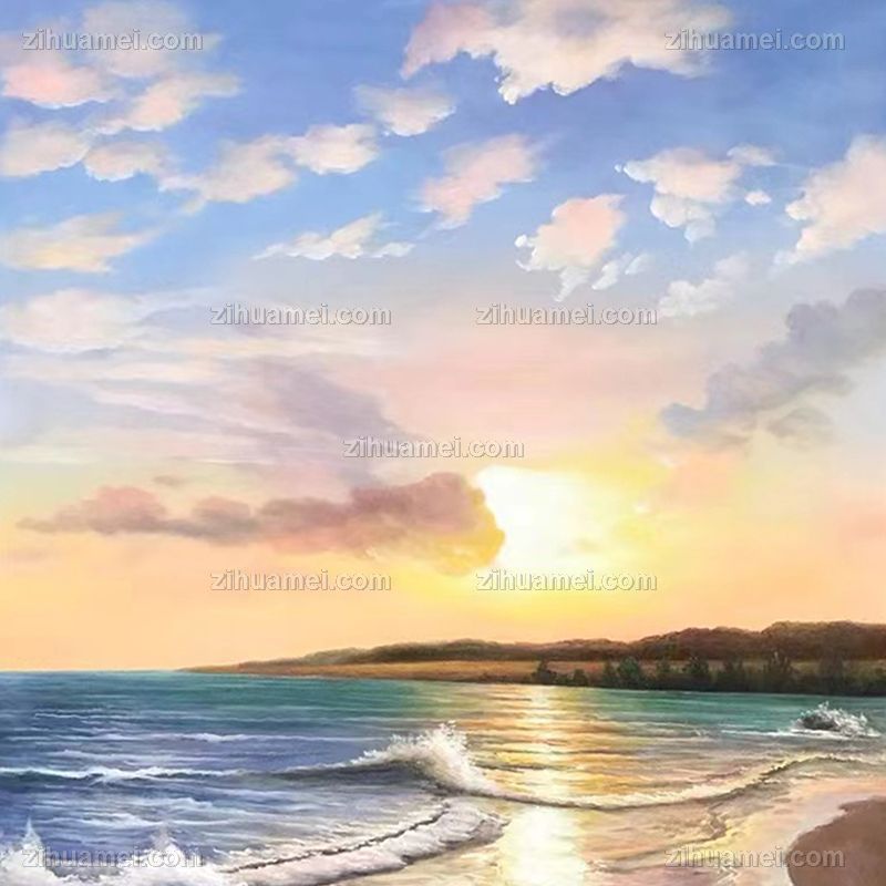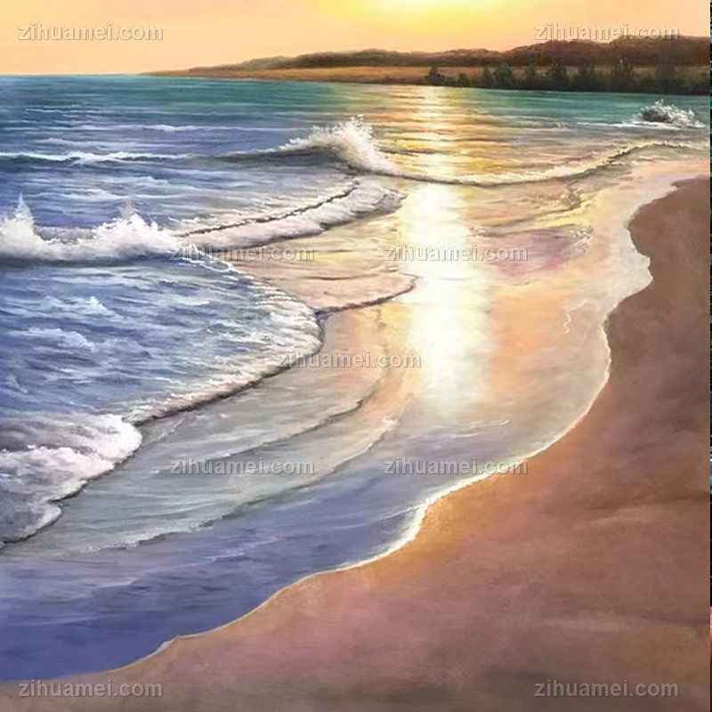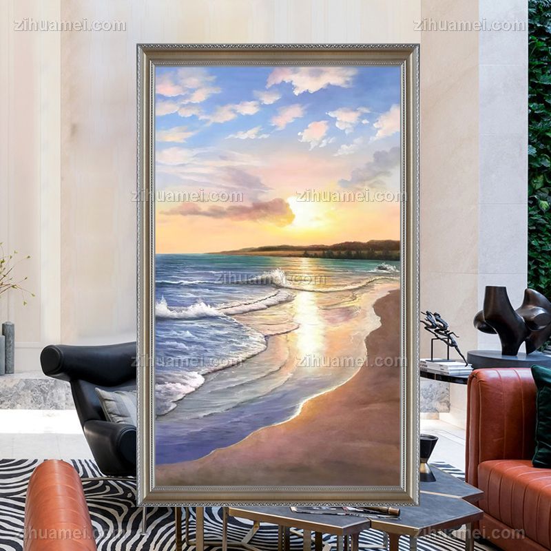 • 海湾沙滩纯手绘美式风景油画景物油画写实风景画实木画框