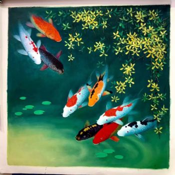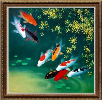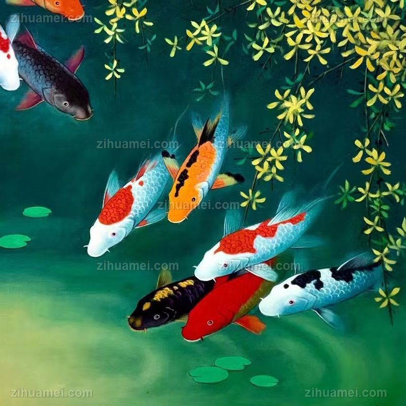 • 品质工笔油画新中式纯手绘动物油画适合餐厅走廊动物油画九鱼图