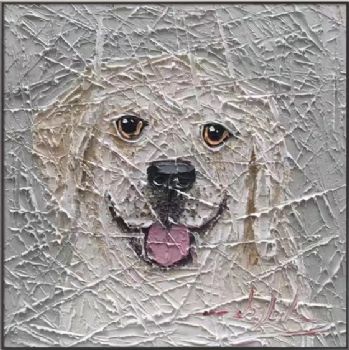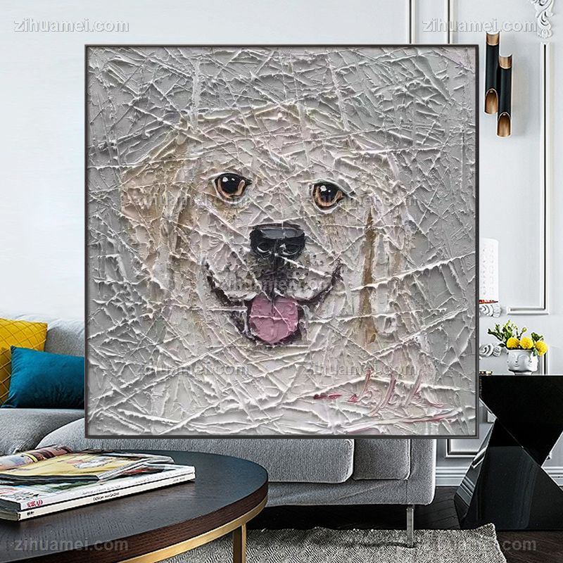 • 原创艺术手法现代可爱小狗抽象动物油画厚肌理当代艺术作品