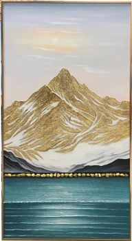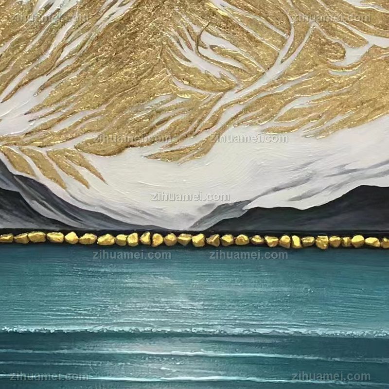 • 现代简约山水画纯手绘手工厚肌理山水玄关油画