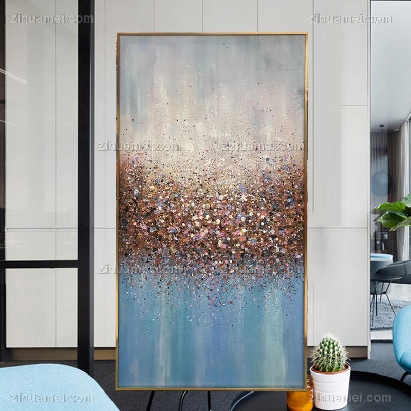 花海风景现代艺术手绘抽象厚肌理玄关装饰画一帆风顺 手绘