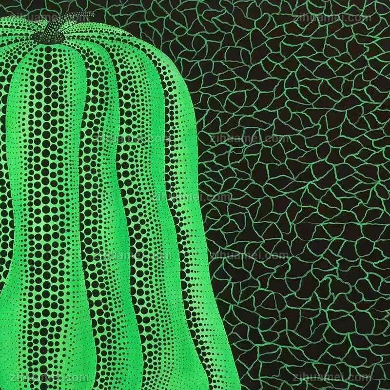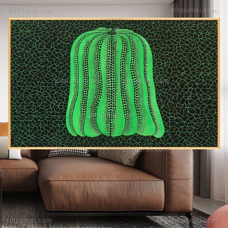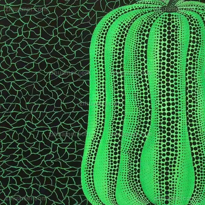 • 纯手绘油画绿色的南瓜仿日本艺术家草间弥生作品现代装饰画