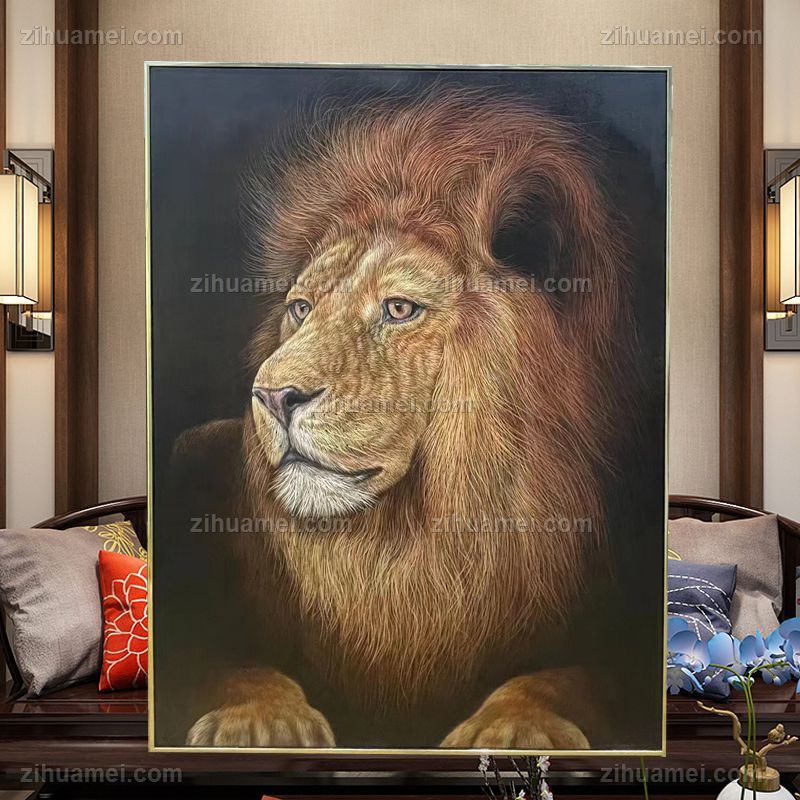 • 雄狮现代简约风格装饰油画纯手绘工笔油画铝合金外框