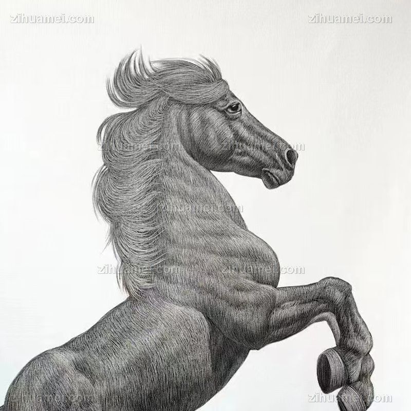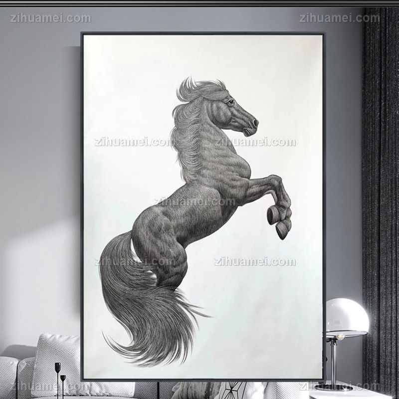 • 纯手绘工笔动物画极佳舒服线条奔腾的骏马图适合酒店大厅挂画