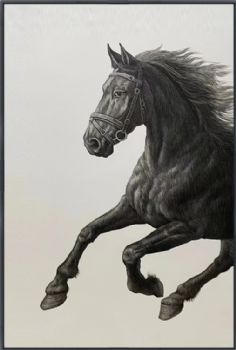 精品花卉白马图纯手绘写实动物油画实木画框 手绘