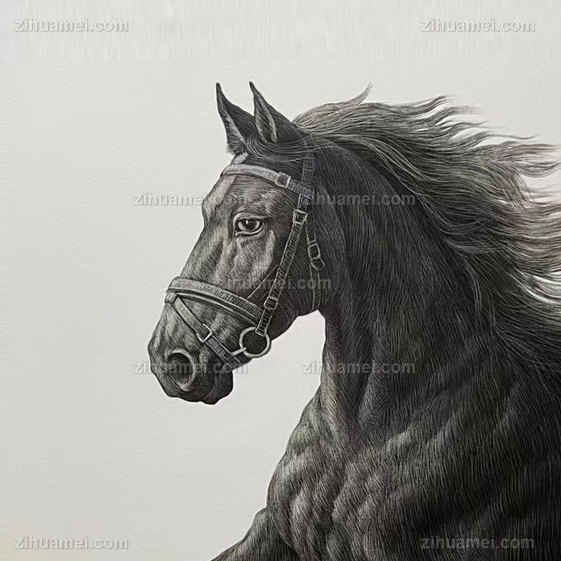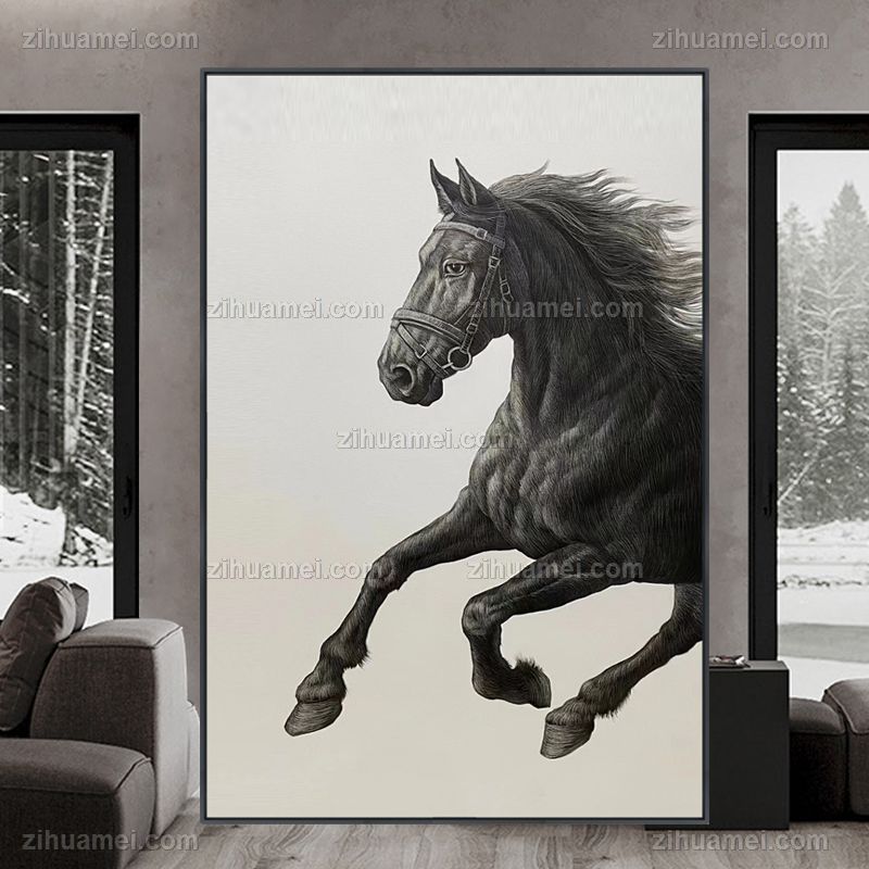 • 纯手绘工笔动物画极佳舒服线条骏马图适合办公室装饰挂画