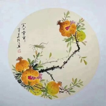 • 手绘水墨画花卉国画石榴图笑口常开小写意斗方画