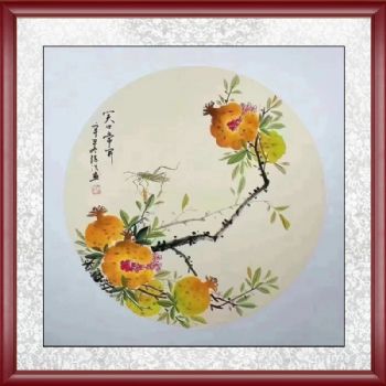 小写意斗方石榴图