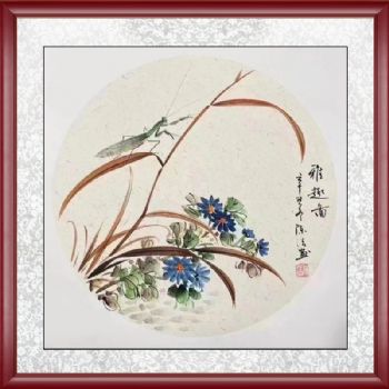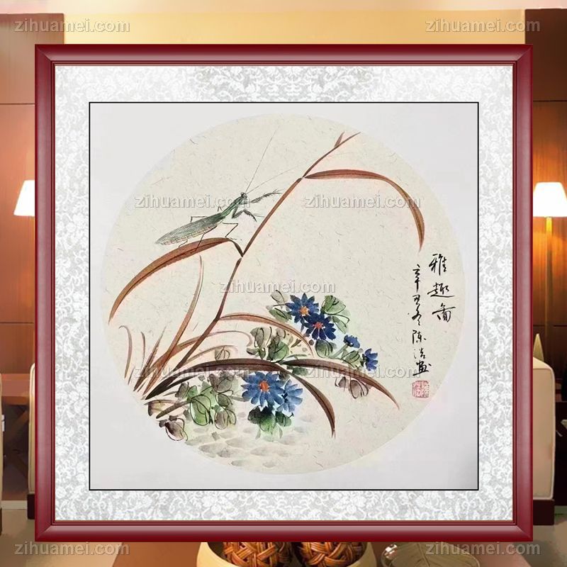 • 手绘水墨国画动物国画写实斗方画雅趣图螳螂图