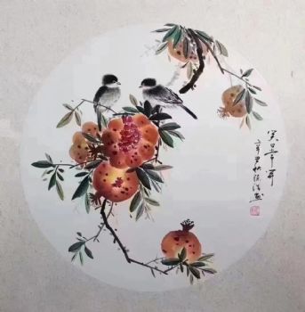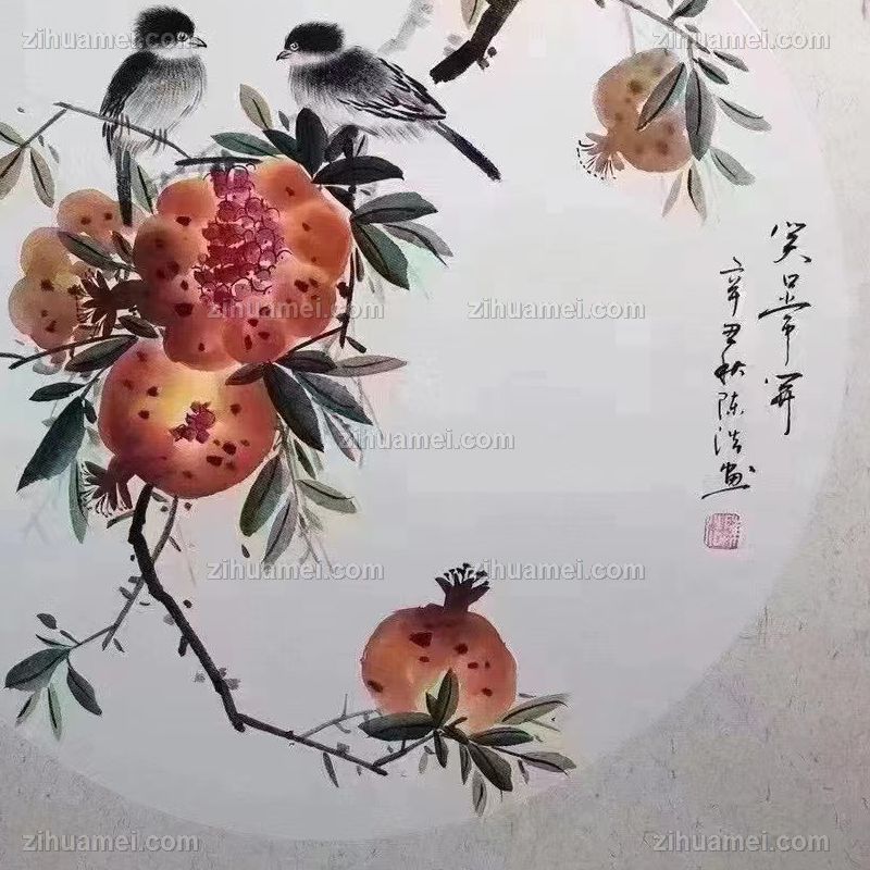 • 笑口常开石榴图手绘水墨画花卉国画