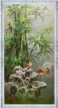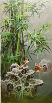 • 新中式节节高升纯手绘花鸟油画小写意石来运转风景油画