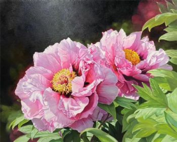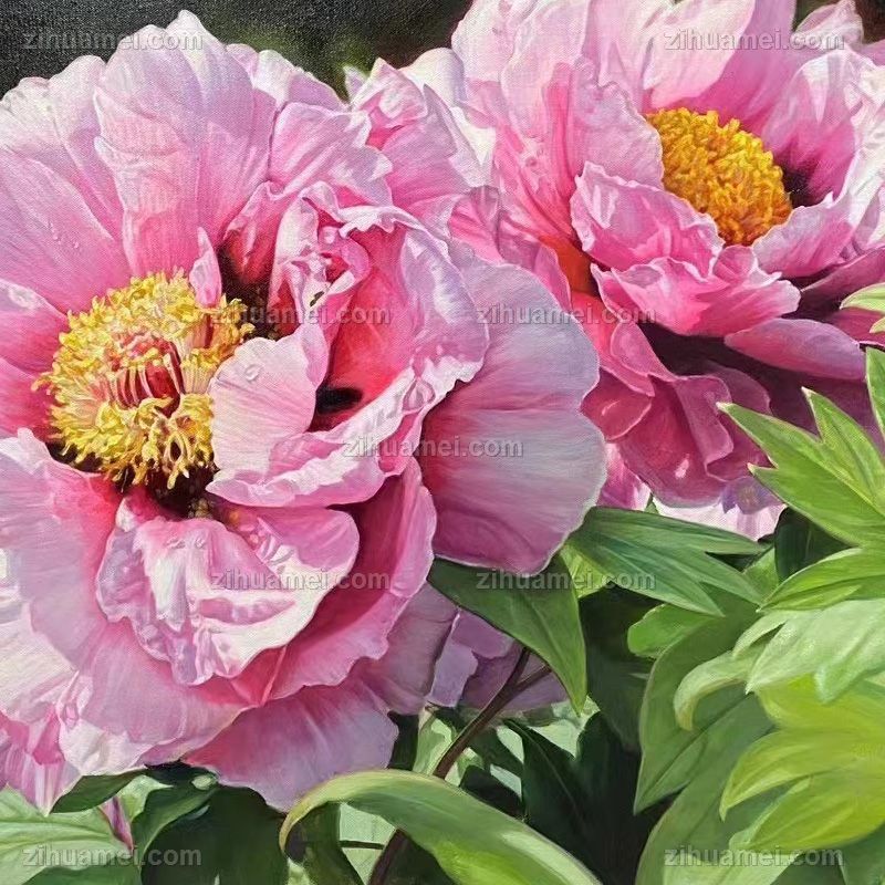 手绘油画写实牡丹图