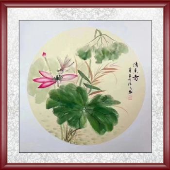 • 手绘水墨画清香图花卉国画蜻蜓立荷花图小写意斗方画小品