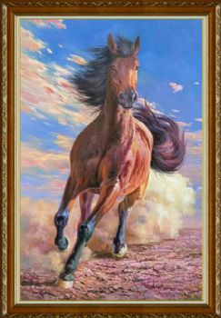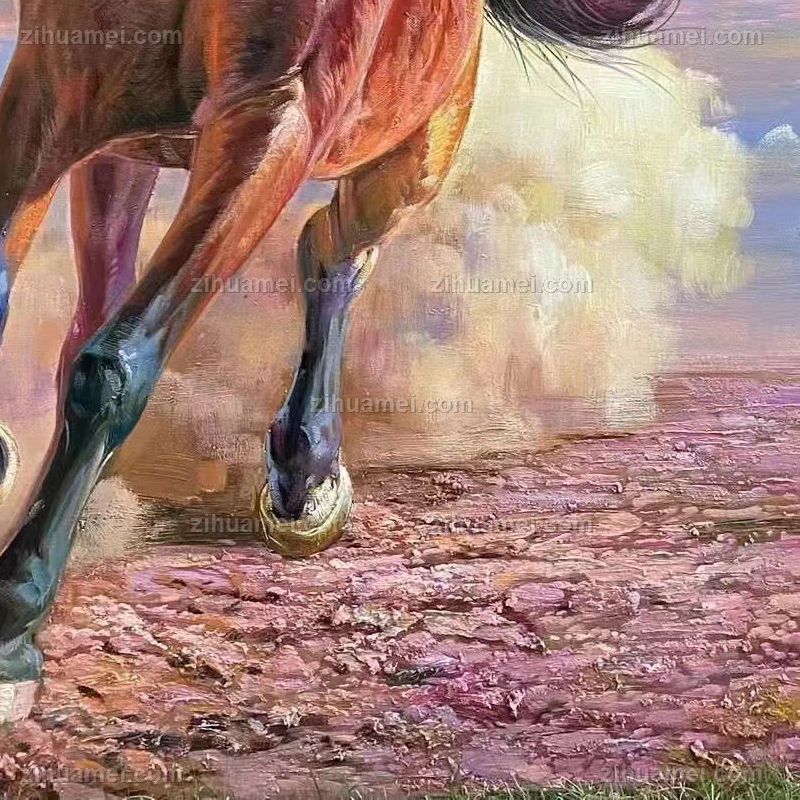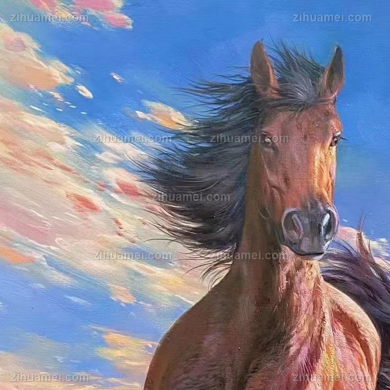 • 精品奔跑的骏马图纯手绘新中式动物油画小写意油画