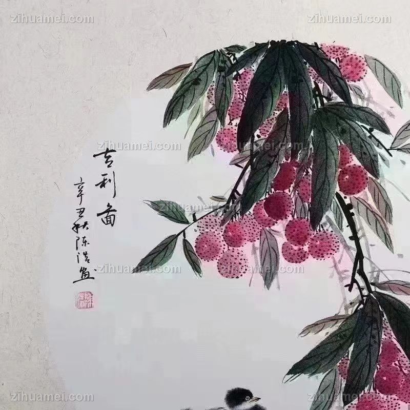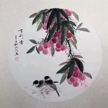 • 吉利图手绘水墨画花卉国画荔枝图斗方画小品