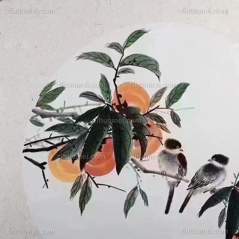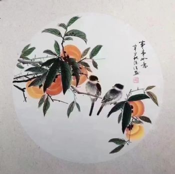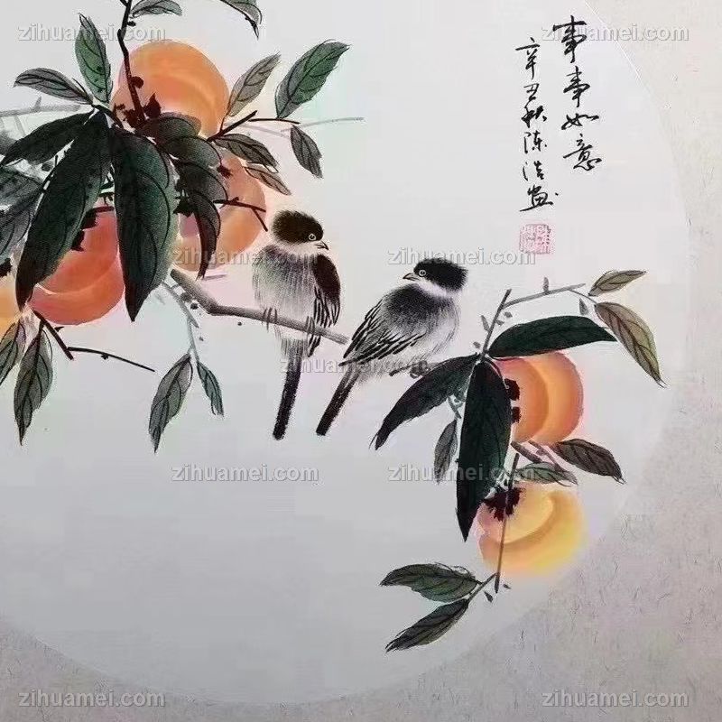 • 事事如意柿子图新中式水墨国画纯手绘小品作品