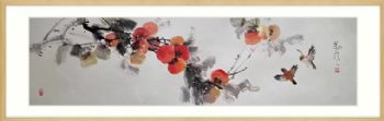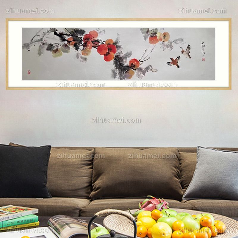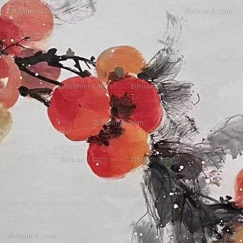 • 柿子图事事如意喜上枝头中式水墨国画纯手绘写意床头画