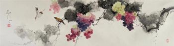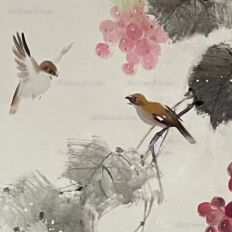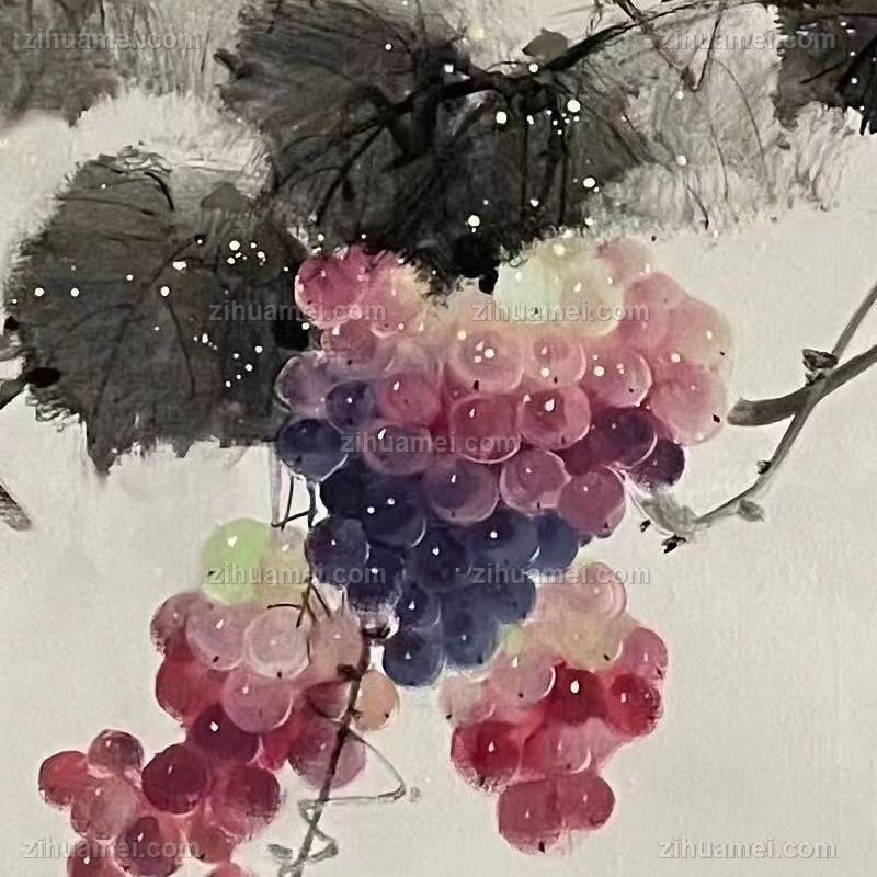 • 纯手绘写意床头画葡萄图多子多福喜上枝头中式水墨国画
