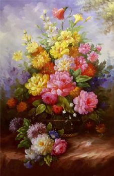 • 欧式古典花卉油画小精品纯手绘的走廊花卉油画