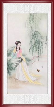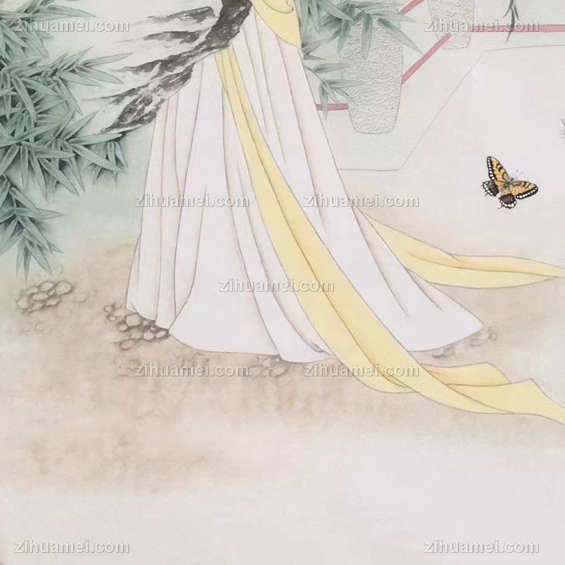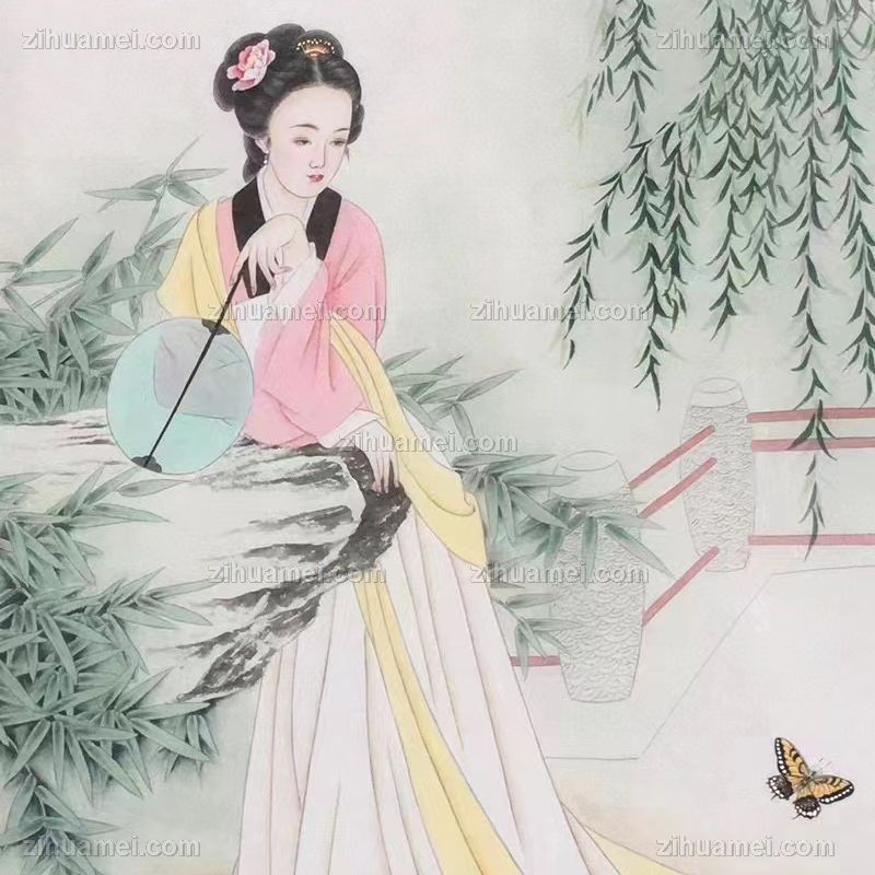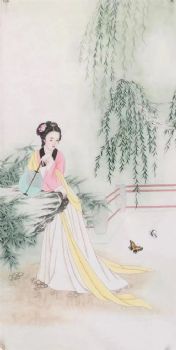 • 蝴蝶与仕女图四尺精品仕女水墨工笔人物国画纯手绘国画